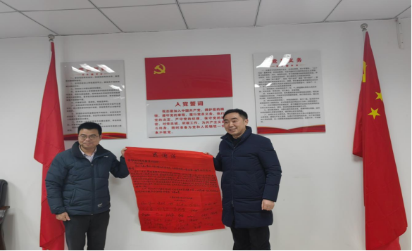 12月22日下午,宜黃縣鳳岡鎮黨委書記一行將寫有“全力幫扶興產業 真心為民辦實事”的錦旗和村民代表簽字的感謝信送到市農發集團,對集團一直以來對鳳岡鎮大鹿村的大力幫扶表示感謝。