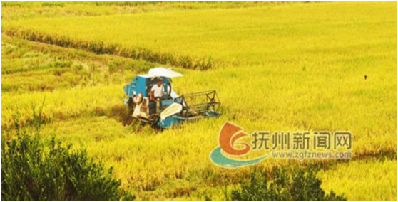 近日,南豐縣太和鎮店前村金色的稻田里,農民正在使用收割機收割中稻。入秋以來,該縣11.7萬畝中稻相繼成熟,當地農民抓住晴好天氣,加緊搶收,確保顆粒歸倉。