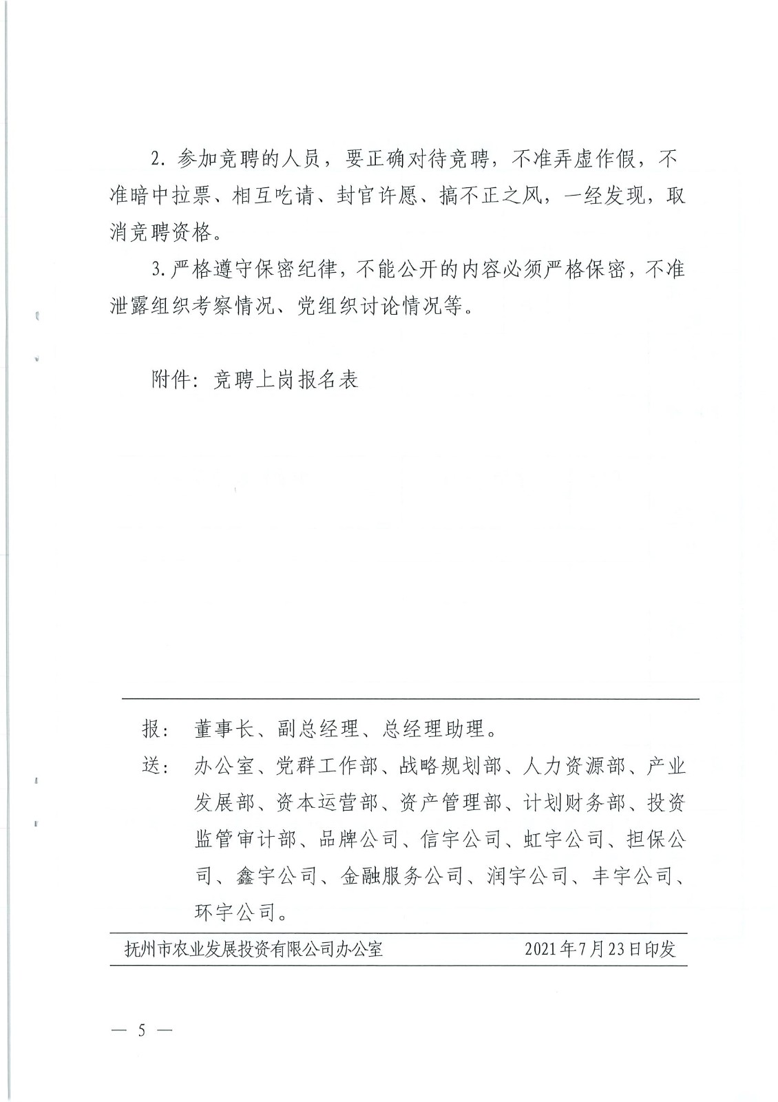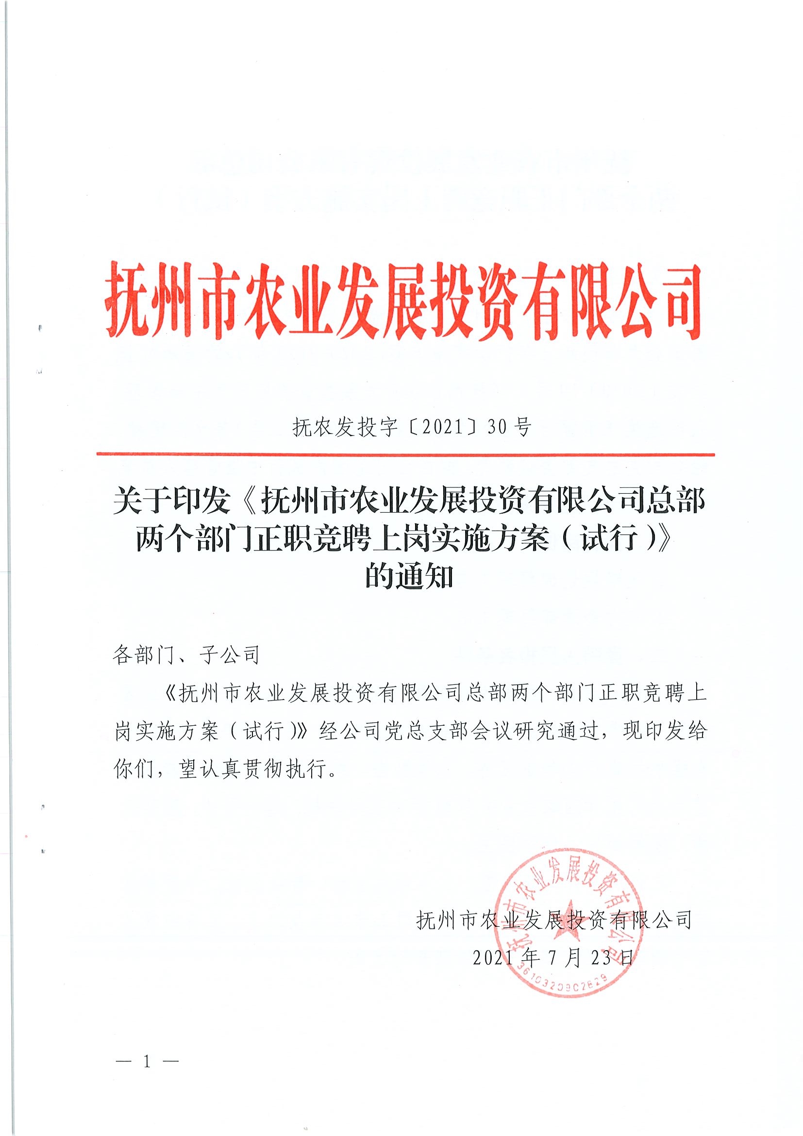 關(guān)于印發(fā)《撫州市農(nóng)業(yè)發(fā)展投資有限公司總部兩個(gè)部門正職競聘上崗實(shí)施方案(試行)》的通知