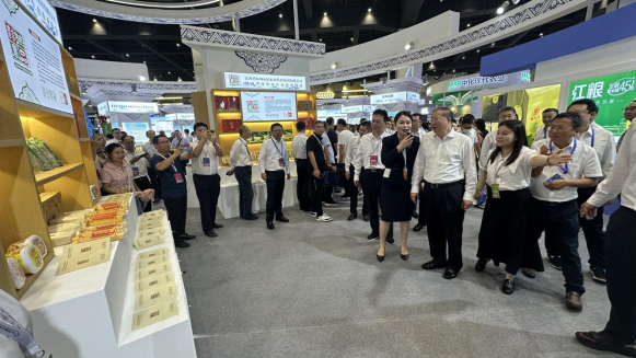 大會上,農業農村部黨組成員、副部長,國家鄉村振興局局長,國家糧食和物資儲備局黨組書記劉煥鑫、江西省發展和改革委員會黨組成員、省糧食和物資儲備局黨組書記、局長,直屬機關委員會委員、書記路文革蒞臨“贛撫農品”展位參觀。撫州市發改委黨組成員、副主任翁福達陪同。