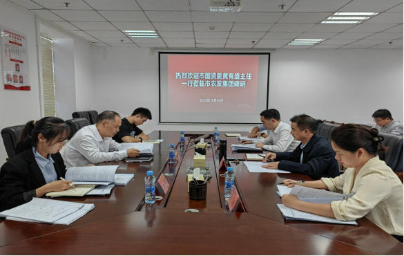10月24日下午,市國資委黨委書記、主任黃有盛帶隊深入市農發集團,圍繞“國企六定改革、主題教育、企業生產經營”等方面開展調研,并召開座談會。市農發集團黨委書記、董事長王柏榮,黨委副書記、總經理胡建軍,黨委委員、副總經理吳娓,法務總監王懷軍及相關部門負責人參加座談。