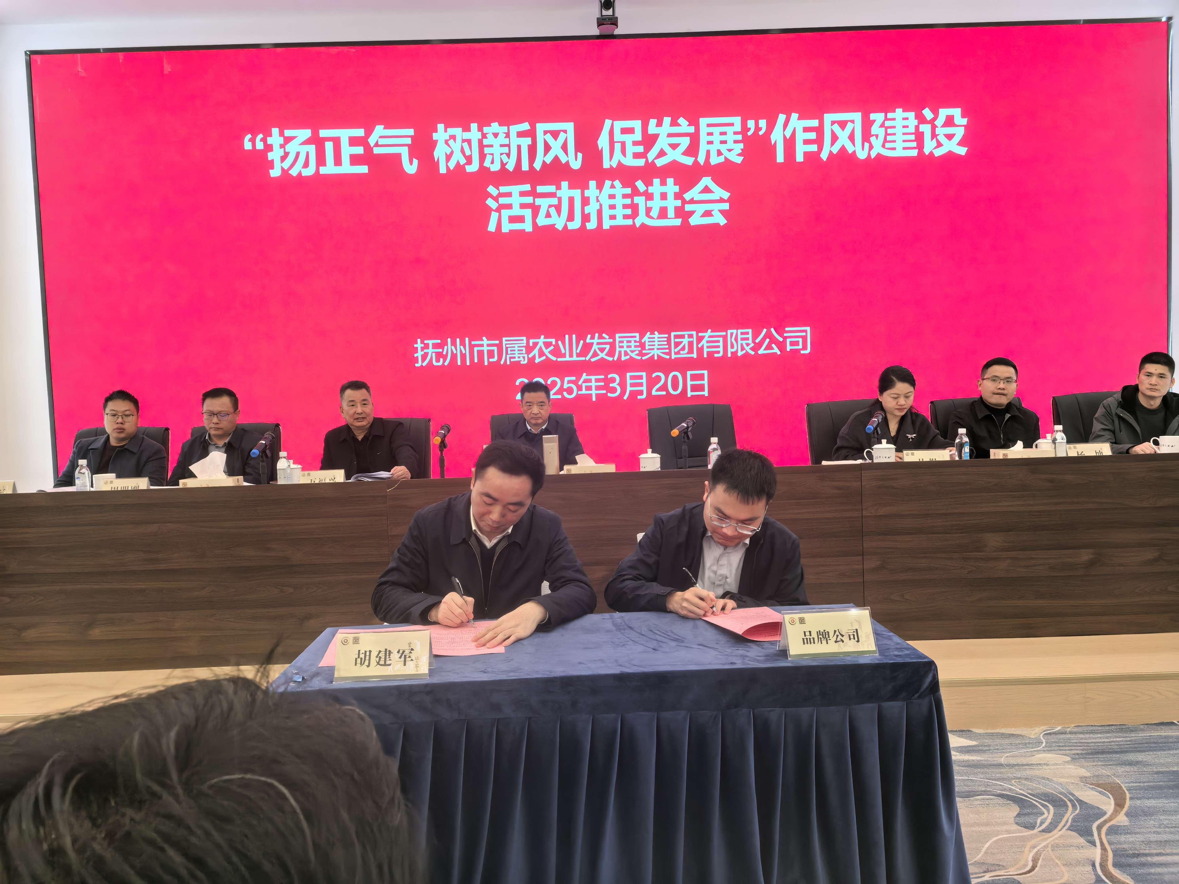 會上,集團黨委委員、紀委書記萬福興傳達了《全市“揚正氣 樹新風 促發展”作風建設活動方案》,強調各部門、子公司要嚴格對標方案制定的“七揚七樹”正面清單和“五聚焦”負面清單,重點整治落實不力、不作為慢作為亂作為、形式主義官僚主義等突出問題。集團黨委委員、副總經理吳娓通報了《市農發集團2025年績效考核實施方案》,明確將作風建設成效與業績考核、評優晉升直接掛鉤,突出“重實干、重實績、重擔當”導向。隨后,胡建軍代表集團經理層與下屬子公司負責人簽訂了《2025年經營業績考核責任書》。