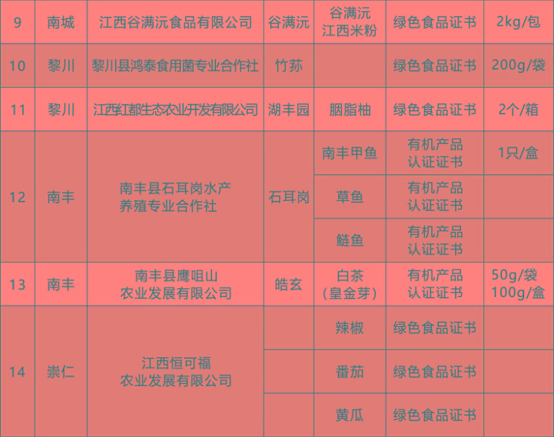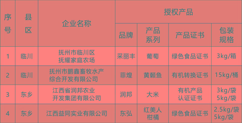 根據《撫州市生態產品質量認證結果采信試點實施方案》(撫府辦字【2023】30號)文件精神,按照《撫州市生態農業協會章程》、《“贛撫農品”區域公用品牌使用管理辦法》、《“贛撫農品”集體商標管理實施細則》相關規定,經撫州市生態農業協會組織初審、復審,最終評定2023年共33家會員主體的57個產品符合品牌授權標準。現將2023年度授權使用“贛撫農品”區域公用品牌的產品名錄予以發布。